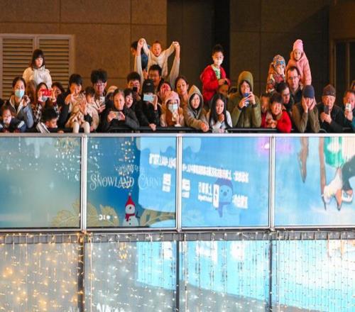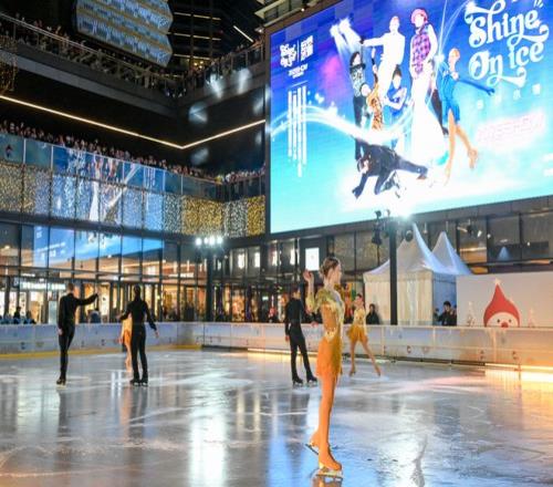 上海陸家嘴中心L+Mall下沉廣場(chǎng)變身冰雪舞臺(tái),來(lái)自歐美及中國(guó)的頂級(jí)冰舞藝術(shù)家,聯(lián)袂花樣滑冰世界奧運(yùn)選手、冠軍名將陸續(xù)登場(chǎng),冰刃劃出的光影在透明冰面上交錯(cuò)閃動(dòng),腳邊躍起的冰屑與舞者擦身而過(guò)的風(fēng)聲交織在一起,營(yíng)造出極具沉浸感的觀演氛圍。整場(chǎng)冰舞表演讓廣場(chǎng)化為一個(gè)具備真實(shí)質(zhì)感的“沉浸式冬季劇場(chǎng)”,也讓這座城市廣場(chǎng)成為浦東今冬最引人注目的風(fēng)景之一。