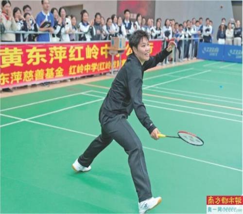 活動(dòng)中,黃東萍與師生們近距離切磋“球藝”。她在與師生們“過(guò)招”后由衷贊嘆:“紅嶺中學(xué)羽毛球的水平真的非常高?!?/p>