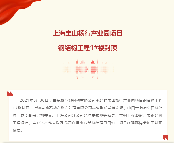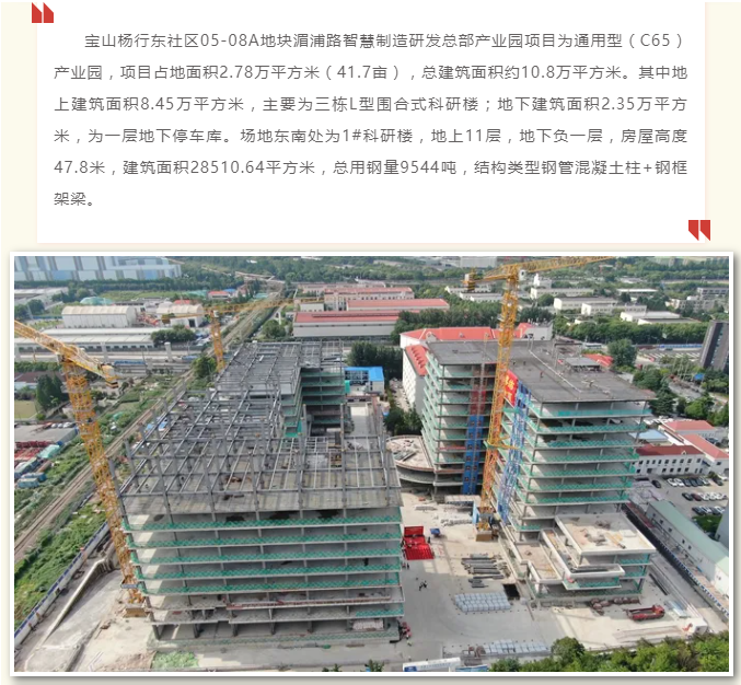 上海寶山楊行產(chǎn)業(yè)園項目鋼結(jié)構(gòu)工程1#樓封頂