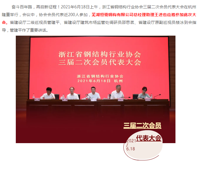 浙江省鋼結(jié)構(gòu)行業(yè)協(xié)會(huì)三屆二次會(huì)員代表大會(huì)會(huì)議在杭召開(kāi)